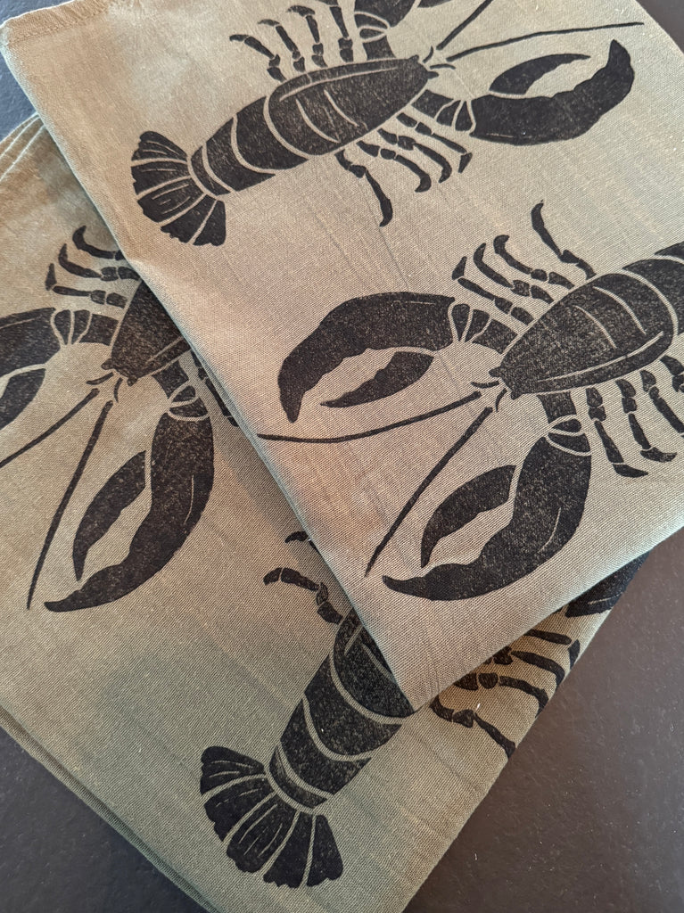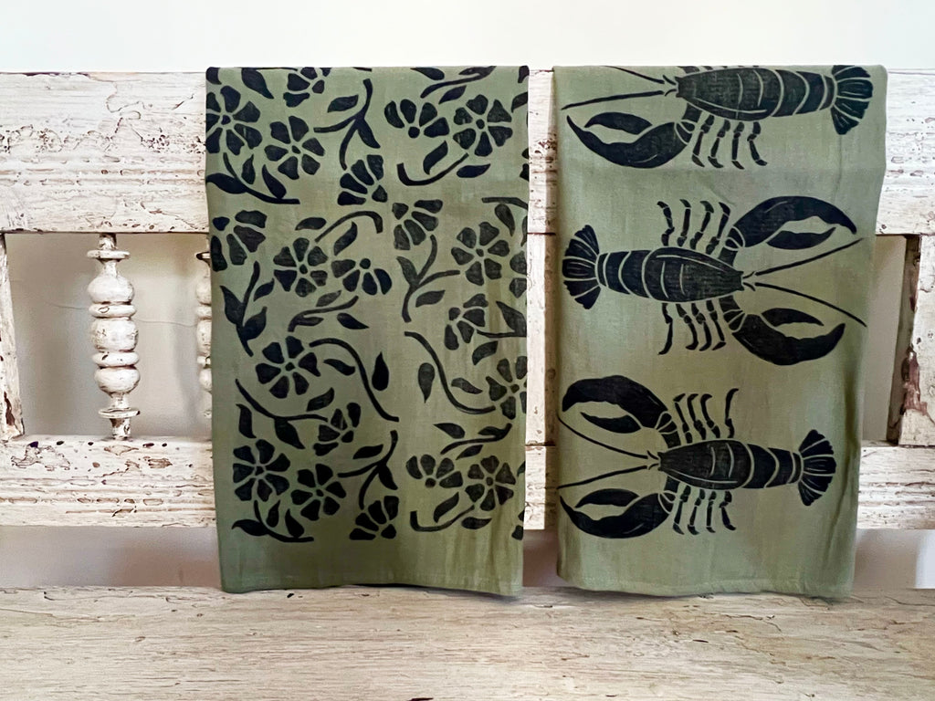 Set of 2 tea towels. Organic cotton, block printed by hand.